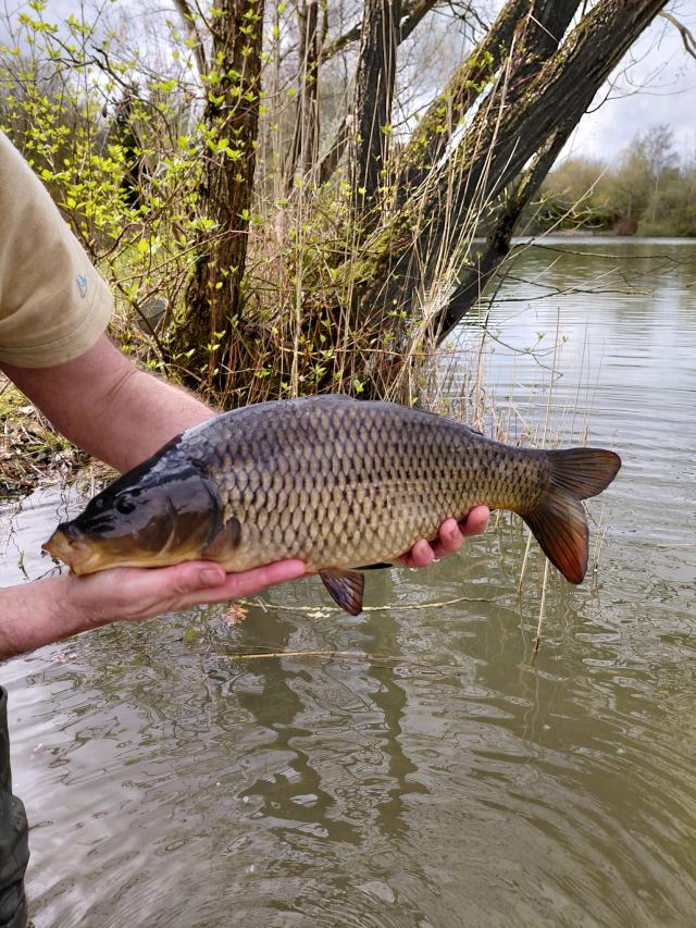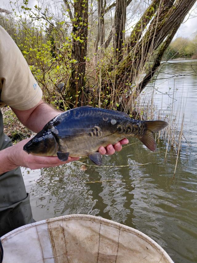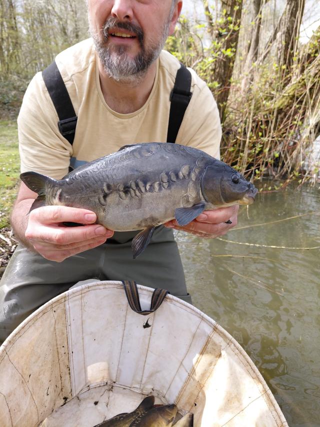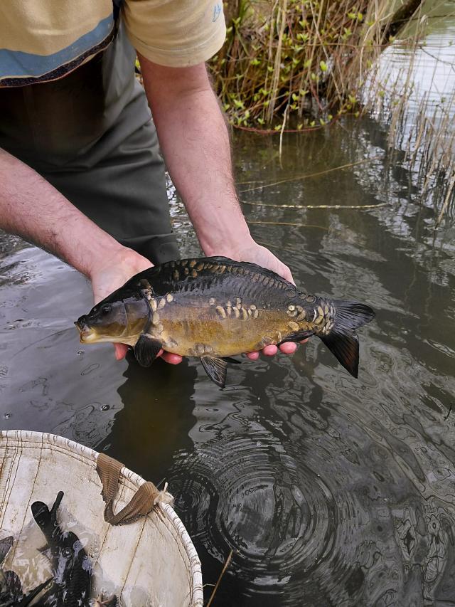 82 carp grown on in the holding net at Straits Mill moved today to Thoby Wood.